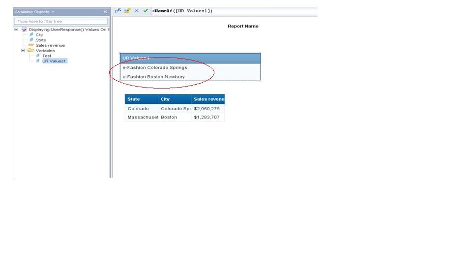 Here circular ares is the values of prompt on separate rows by using UserResponse() function.